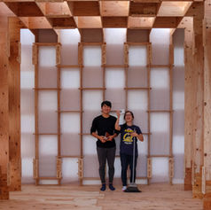 東日本大震災から7年以上の時が経て、福島原子力発電所から30km圏内にある川内村では約80%の村民が帰村しています。かわうちワイン株式会社もまた、2017年よりこの地で新しい産業となるワイン造りを始めました。このテイスティングパビリオンの全ての部材は、小林博人研究会の学生たちがCNCルーターを現地の旧精密機械工場に持ち込んで切り出しました。3.8m角のチェッカーフラッグ状の壁面で構成されたシンボリックなキューブは、広いぶどう畑を見晴らす場所に建ち、その美しい景色と共に川内村の新しいワイン生産を見守ってゆきます。