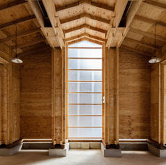 前網浜べニアハウスは、南三陸べニアハウスを改良して構想されたべニアハウス第二弾です。東日本大震災の被害に遭った地元の漁業組合有志によって地域間伐材を利用して施工された、コミュニティ集会所兼倉庫計画です。